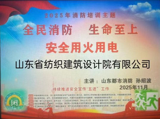 為積極響應(yīng)2025年全國(guó)"消防宣傳月"活動(dòng)號(hào)召,11月14日,山東省紡織建筑設(shè)計(jì)院有限公司在漢峪金谷A2-5棟辦公區(qū)開(kāi)展以"全民消防、生命至上——安全用火用電"為主題的消防系列活動(dòng)。