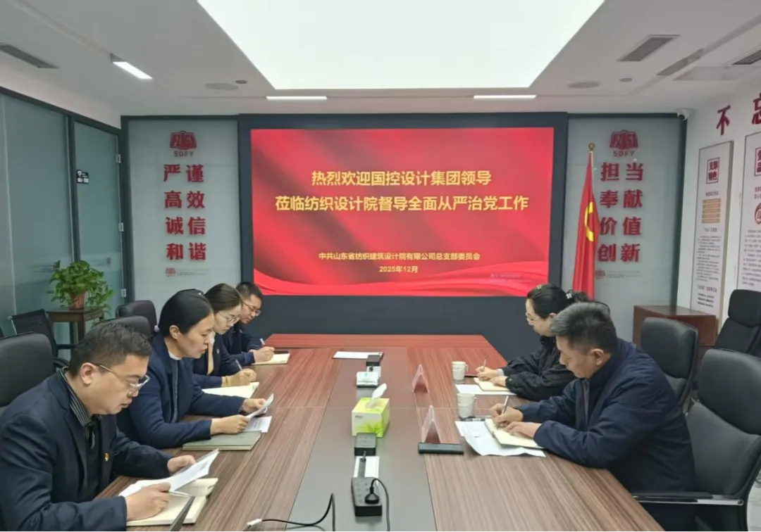 12月4日,山東省國(guó)控設(shè)計(jì)集團(tuán)有限公司黨委副書(shū)記、董事、總經(jīng)理王風(fēng)光一行到紡織設(shè)計(jì)院開(kāi)展落實(shí)全面從嚴(yán)治黨主體責(zé)任情況督導(dǎo)調(diào)研,并全程列席指導(dǎo)紡織設(shè)計(jì)院黨總支會(huì)議。